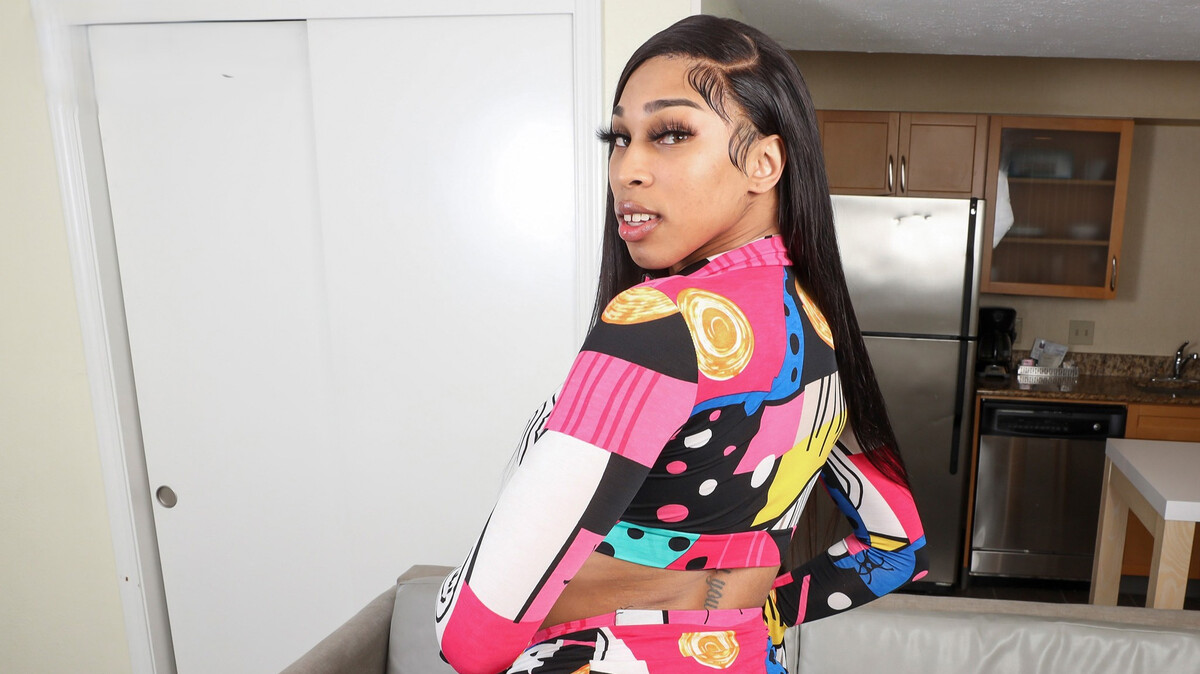 Ryne Stone is still horny! She's back to give you more in today's Transgasm exclusive and once again - she is looking absolutely stunning! Ryne is without a doubt one of the hottest stars and we just can't get enough of her! See her stroking that cock until she shoots a sticky load all over herself!